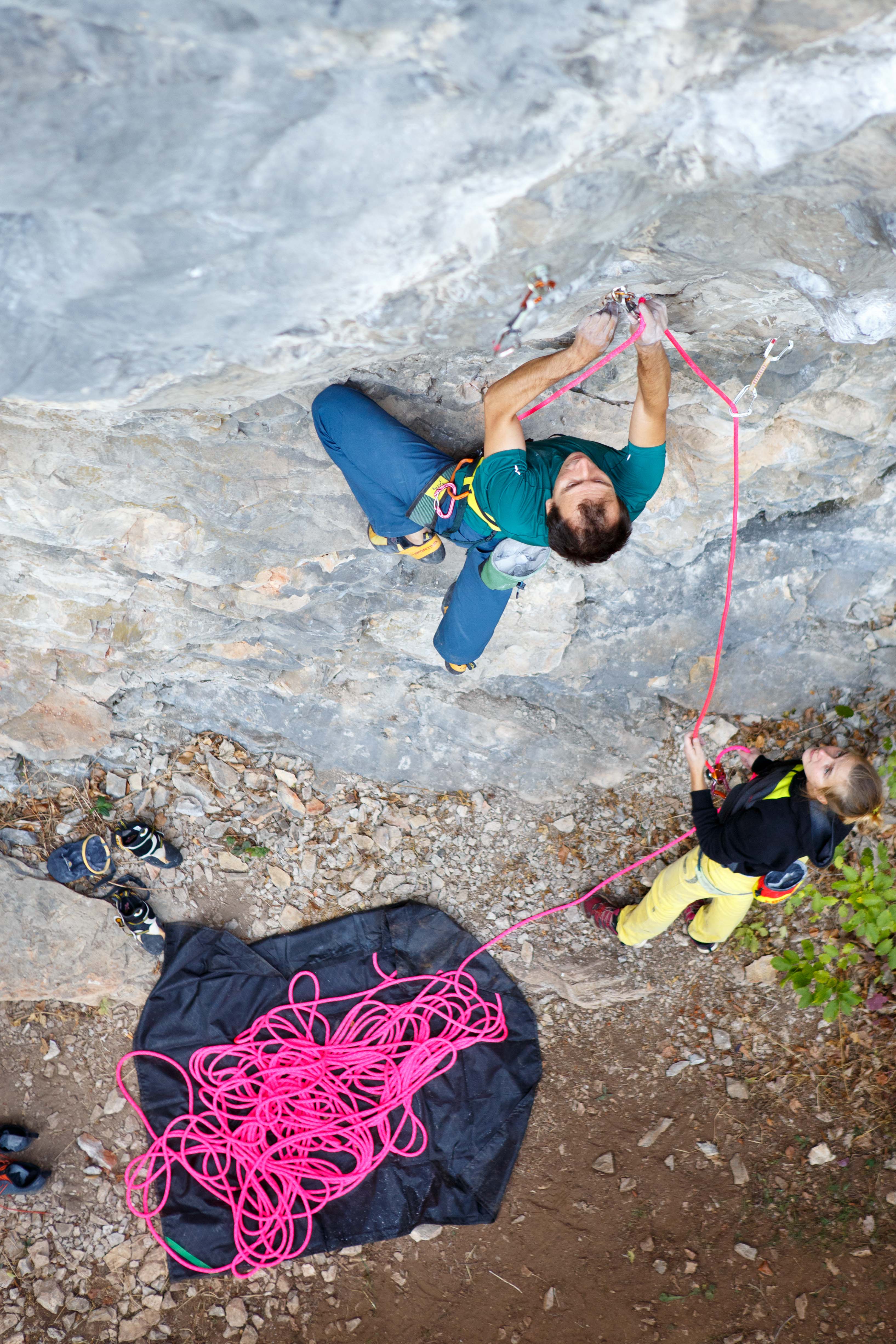 Master Pro 9.2 už máš, pro jistotu jsi přihodil ještě Master Pro 7.6, a asi 20 expresek, jistítko, brýle na jištění, lezečky, postroj, pytlík na mágo a helmu. Co se toho posledního týče, dobrá volba je helma Orbix, která patří mezi nejlehčí helmy na trhu a je jen o 70 g těžší než ten úplně nejlehčí model, a přitom je opravdu odolná a pohodlná. Teď to všechno nacpi do Tendon Gear Bagu – má uvnitř plachtu na lano, takže na něj rozhodně nezapomeň.
